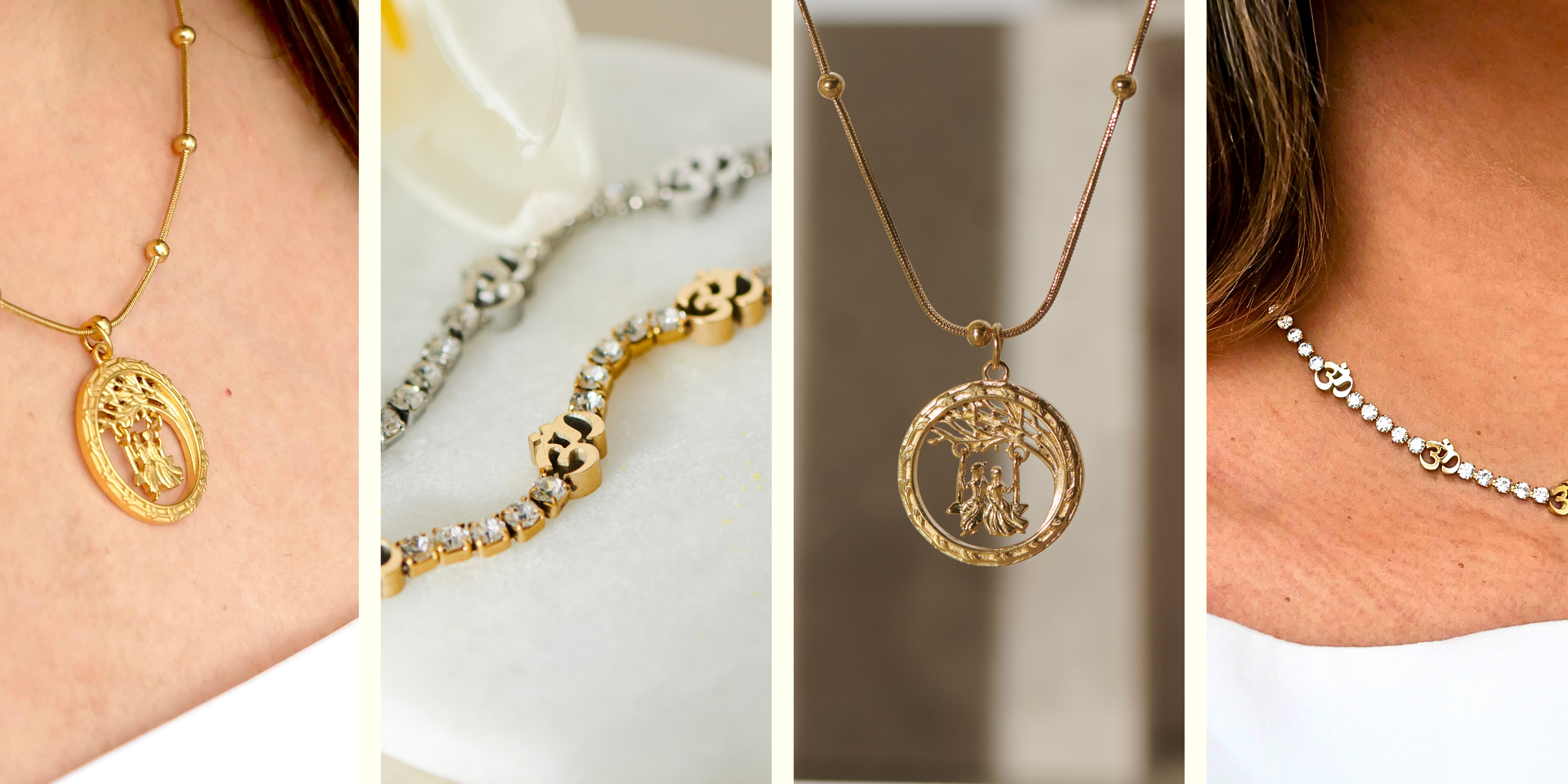 "I really love the aum bracelet and Radha Krishna necklace! My husband ordered this for me for my birthday and I love it so much. The attention to details, packaging and service is wonderful."