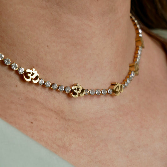 Gold Om Tennis Necklace
